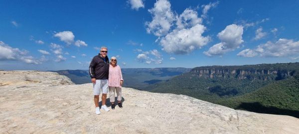 Linda & Adrian on holidays from England enjoying a 4 hour Blue Mountain trike tour with a stop at Megalong Valley Tea Room for lunch.
